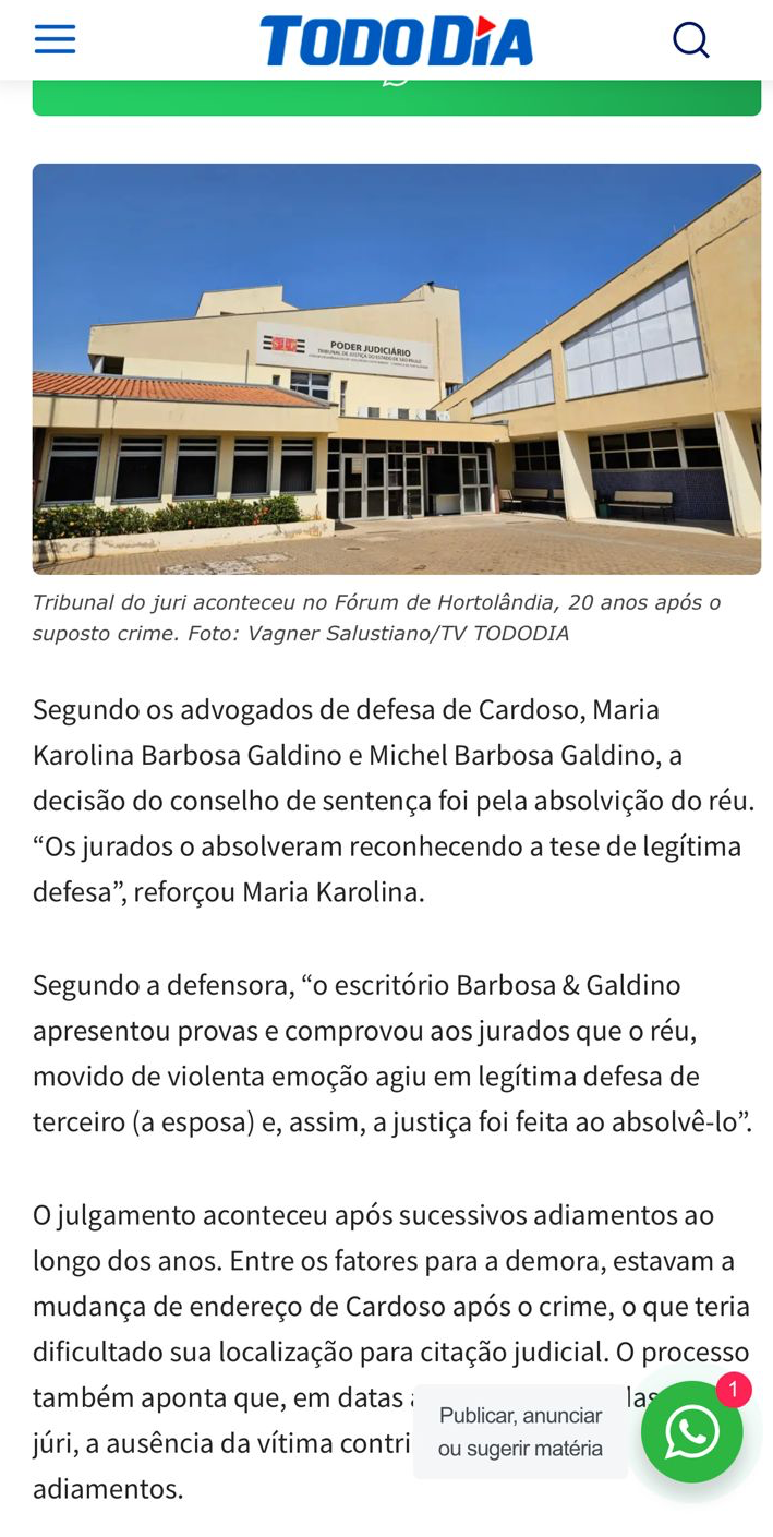 Após quase 20 anos, acusado de tentar matar vizinha com facada vai a Júri Popular em Hortolândia e é absolvido pelo conselho de sentença com a atuação do escritório