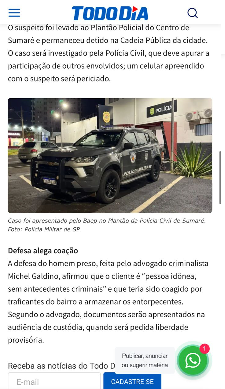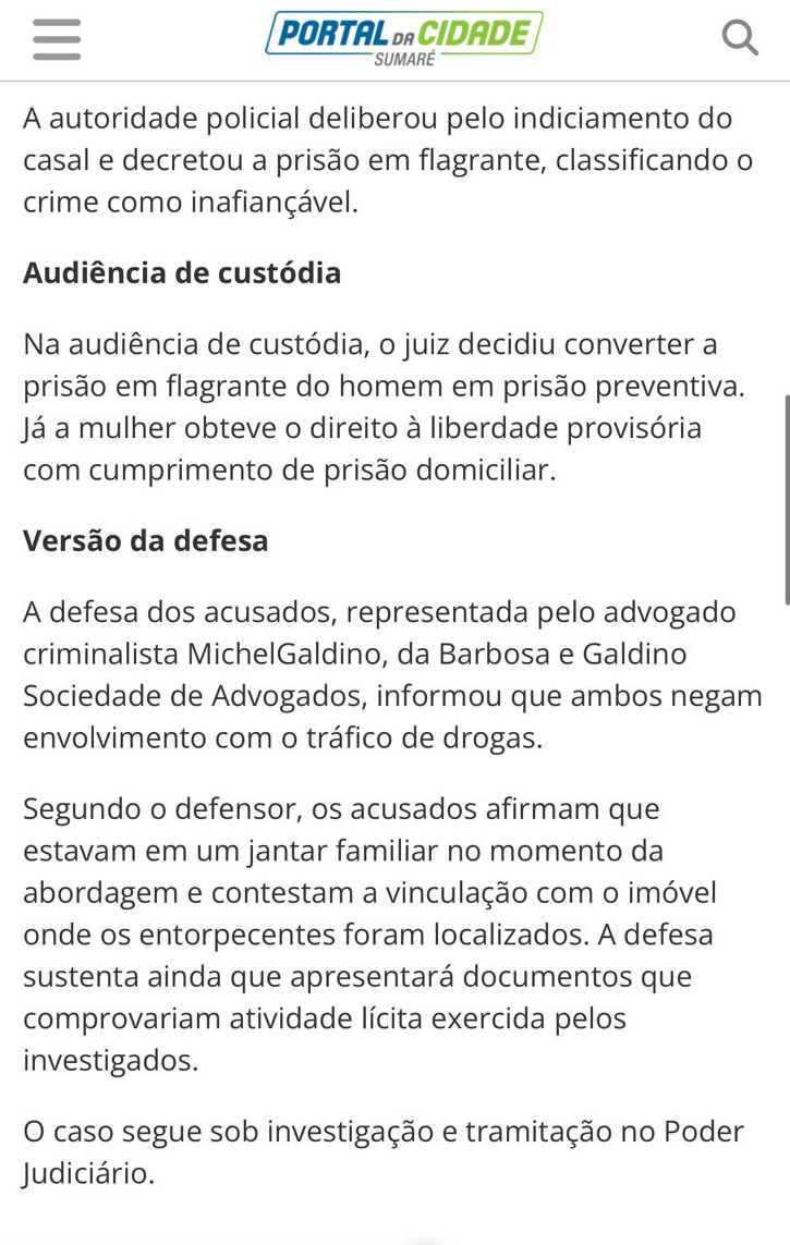 A defesa do homem preso, feita pelo advogado criminalista Michel Galdino, afirmou que o cliente é “pessoa idônea, sem antecedentes criminais” e que teria sido coagido por traficantes do bairro a armazenar os entorpecentes.